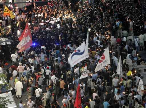 中新網(wǎng)8月6日電 美國總統(tǒng)布什乘坐“空軍一號”展開亞洲3國訪問,5日飛抵首爾開始20小時旋風(fēng)式訪問。約2萬名反對美國牛肉入口的示威者上街示威,當(dāng)局部署1.8萬警力戒備,防暴警察曾向數(shù)千示威者發(fā)射水炮,并拘捕約70人。