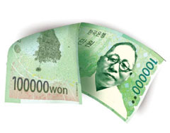 韓國(guó)政府原計(jì)劃于明年年初發(fā)行的10萬(wàn)韓元面值的紙幣。