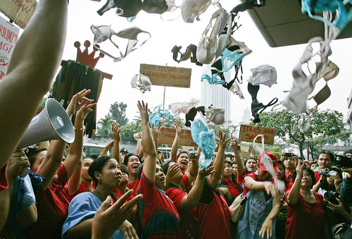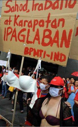 當(dāng)日,數(shù)百名女工游行至該公司位于金融區(qū)馬卡蒂的倉庫示威,期間她們大拋女性內(nèi)衣褲,以示不滿。