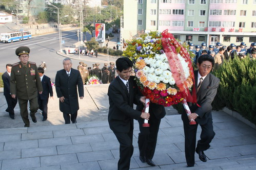 友誼塔前,朝鮮人民軍儀仗隊(duì)身著戎裝,英姿颯爽。伴隨著軍樂隊(duì)莊嚴(yán)的奏樂聲,朝鮮勞動(dòng)黨中央委員會、最高人民會議常任委員會和內(nèi)閣、人民武力部、外務(wù)省、人民保安省、貿(mào)易省、文化省、朝中友協(xié)和對外文委、平壤市黨委和人民委員會向友誼塔敬獻(xiàn)了花圈。花圈緞帶上寫著“光榮屬于中國人民志愿軍烈士”。朝鮮最高人民會議常任委員會秘書長崔永林、人武部副部長樸在京、外務(wù)省副相金永日、貿(mào)易省副相李明山、朝中友協(xié)副委員長兼對外文委副委員長田英進(jìn)等朝領(lǐng)導(dǎo)人和部門負(fù)責(zé)人及百余名各界群眾出席了儀式。