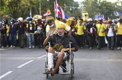 曼谷大眾運(yùn)輸系統(tǒng)管理局的營運(yùn)副主管說,人民民主聯(lián)盟的支持者當(dāng)天上午偷了四輛巴士,用來封鎖政府機(jī)關(guān)。他說:“抗議群眾持棍棒上了巴士,要求乘客下車。他們只留下司機(jī),控制了這幾輛巴士。”
