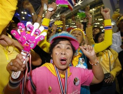 泰國(guó)反政府示威者歡呼頌猜下臺(tái)。