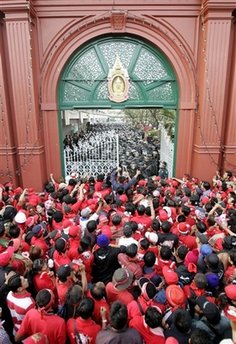泰國支持他信的“紅衫軍”“反獨裁民主聯(lián)合陣線”(UDD)日前在國會大廈外進行示威時,誤將國王普密蓬和王后詩麗吉的畫像放在一幅帶有攻擊性標語的邊上,此舉倍受指責,反獨裁民主聯(lián)合陣線的領(lǐng)導人將面臨冒犯君主罪的起訴。