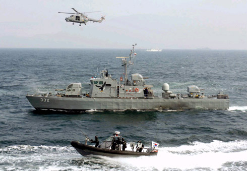 當天,韓國型驅逐艦“文武大王艦”、一架反潛直升機和兩艘高速短艇和負責船舶搜查任務的海軍特種士兵參與了演習。