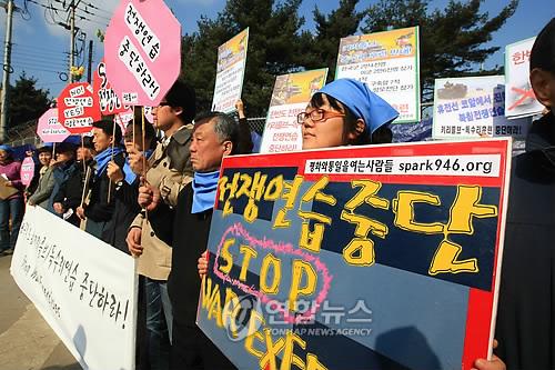 在光州,30多名6.15共同委員會(huì)光州全南本部成員,在全南道舊政府大樓前舉行記者會(huì)表示:“目前韓半島處于高度緊張狀態(tài),應(yīng)停止大規(guī)模的戰(zhàn)爭(zhēng)演習(xí)!