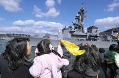 中新網(wǎng)3月14日電 據(jù)日本共同社報道,為打擊索馬里海域的海盜,日本防衛(wèi)相13日下令根據(jù)《自衛(wèi)隊(duì)法》采取海上警備行動,海上自衛(wèi)隊(duì)兩艘護(hù)衛(wèi)艦“漣”號和“五月雨”號14日下午從廣島縣吳基地啟程出發(fā)。