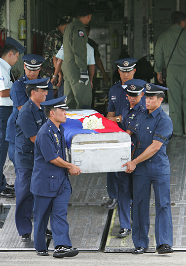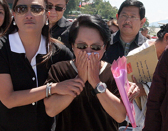 菲律賓總統(tǒng)阿羅約在走過遇難者的靈柩時痛哭失聲。