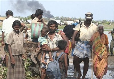 之前政府軍攻打猛虎組織,許多被困平民逃離猛虎組織控制。斯里蘭卡軍方稱(chēng),20日約有2.5-3.5萬(wàn)平民逃離猛虎組織控制區(qū)。