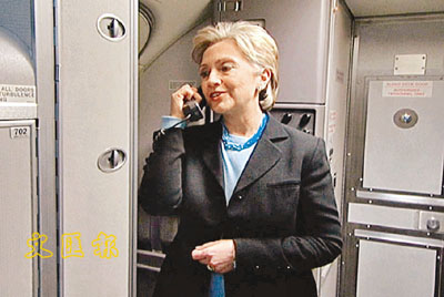 希拉里扮空姐娛記者 將專機(jī)命名"希軍一號(hào)"(圖)