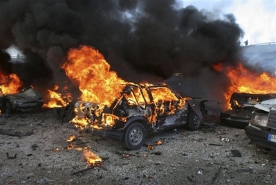2007年6月,黎巴嫩國會議員瓦里德•埃多遭遇汽車炸彈襲擊喪生;9月,黎巴嫩議員加奈姆被暗殺;12月,黎巴嫩軍方將領(lǐng)哈吉(Franois el-Hajj)在汽車炸彈襲擊中遇難。一個多星期以前,貝魯特發(fā)生的一起汽車炸彈襲擊事件造成美國駐黎巴嫩大使館的一輛汽車在爆炸中受損,20多名平民傷亡。