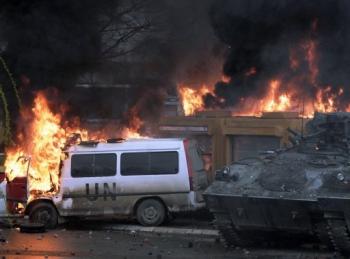 一些民眾強(qiáng)行進(jìn)入位于米特羅維察北部的聯(lián)合國地區(qū)法院,降下了懸掛在法院建筑上的聯(lián)合國旗幟,升起了塞爾維亞國旗。