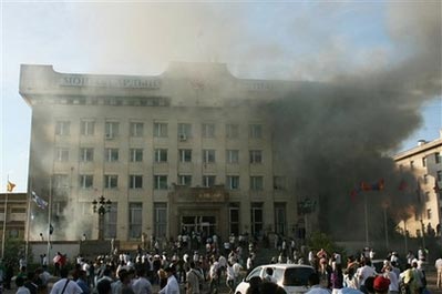 據(jù)悉,大批示威者沖擊人民革命黨黨部,并投擲石塊。人民革命黨黨部門(mén)窗被毀,玻璃幾乎全部被打碎,示威者還點(diǎn)燃了一輛汽車。