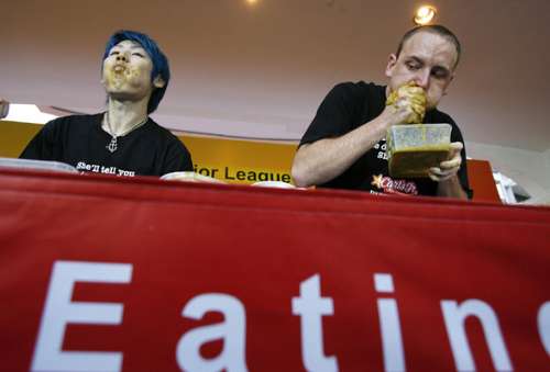 小林在競食界得獎無數(shù),曾連續(xù)六年贏得美國紐約知名的“內(nèi)森”熱狗競食大賽冠軍,但在二○○七年和剛過去的七月四日連續(xù)兩屆輸給切斯納特飲恨。