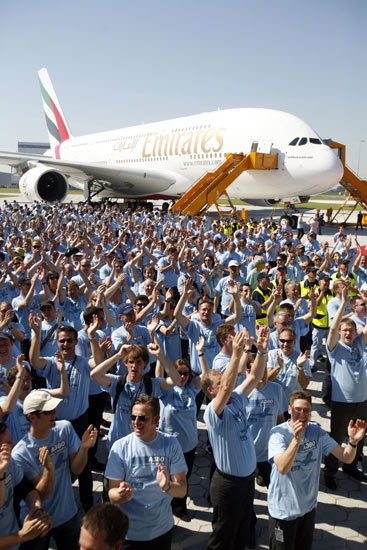 據(jù)悉, 28日在德國(guó)漢堡附近的芬肯韋德,空中客車公司總裁兼首席執(zhí)行官托馬斯•恩德斯把A380客機(jī)中的第一架交付給阿聯(lián)酋航空公司。