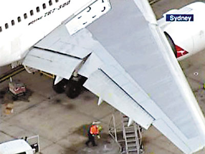 出事的澳航波音767客機(jī)迫降后由工作人員檢查。