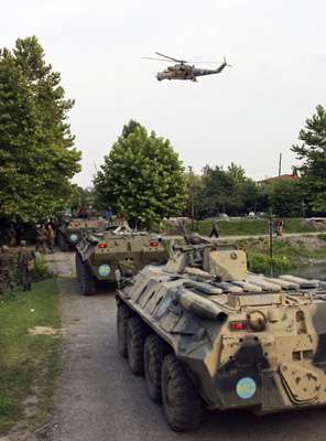 俄軍裝甲部隊十日在武裝直升機的護送下進入阿布哈茲。