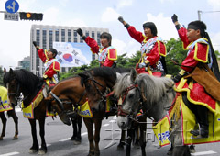 據(jù)日本共同網(wǎng)報道,這些學(xué)生屬于一個旨在傳承國家傳統(tǒng)騎馬武藝的韓國團體。6人一邊高喊著“獨島是我們的領(lǐng)土”,一邊騎馬來回于在大使館附近。