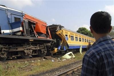 警方稱,事故發(fā)生在距印尼首都雅加達(dá)西北部185英里處的村莊附近,一輛緩慢行駛的客運貨車與一個已經(jīng)入泊的火車頭相撞,造成9人死亡,數(shù)十人受傷。