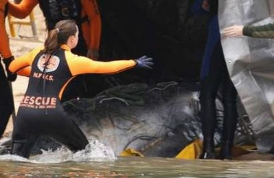 21日,獸醫(yī)的檢查報(bào)告顯示,約2噸重的座頭鯨相信只有兩三個(gè)星期大,身體狀況很差,估計(jì)只能存活幾個(gè)小時(shí)。另外,小座頭鯨身上也有多處被鯊魚(yú)咬傷,并且呼吸困難。公園護(hù)林人員和海事科學(xué)家于是決定,隔天破嘵時(shí)讓座頭鯨安樂(lè)死。