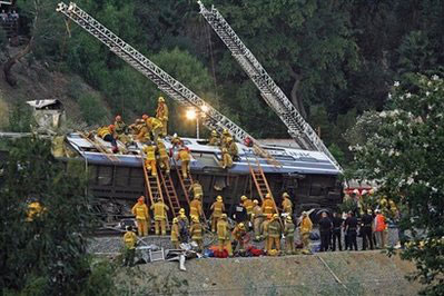 12日下午4時(shí)23分,一輛從洛杉磯聯(lián)合火車站出發(fā)的乘客列車,與另一輛在同一軌道上迎面駛來的貨車相撞。乘客列車撞后出軌,側(cè)翻在路旁。列車上共有222名乘客。《洛杉磯時(shí)報(bào)》報(bào)道說,列車上可能最多有400名乘客。約250名消防員、警察趕到現(xiàn)場(chǎng)救援。