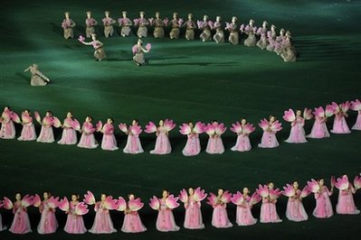 “阿里郎”等大型團(tuán)體操已經(jīng)成為朝鮮的藝術(shù)瑰寶。