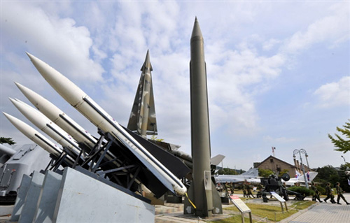 10月8日,韓國軍人在朝鮮戰(zhàn)爭紀(jì)念館展示的朝鮮導(dǎo)彈模型前走過。韓國媒體報道稱朝鮮7日發(fā)射了短程導(dǎo)彈。