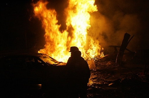 墜毀現(xiàn)場(chǎng)一片大火。