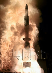 日本宙斯盾艦“鳥!碧柊l(fā)射“標準3”(SM3)型攔截導(dǎo)彈。
