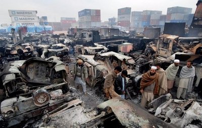運(yùn)往駐扎在阿富汗內(nèi)陸地區(qū)的北約和美國軍隊(duì)的物資有70%以上是從巴基斯坦南部港口城市卡拉奇卸船,然后用卡車經(jīng)過白沙瓦送到目的地。但是軍用物資在白沙瓦和周圍的中轉(zhuǎn)站以及在通過開伯爾山口時頻繁受到塔利班激進(jìn)分子的襲擊。