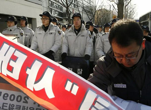 首爾當(dāng)?shù)?3日中午,數(shù)十名雙龍工會及一些市民團(tuán)體成員圍堵在中國大使館門前示威,在近兩個小時(shí)的抗議過程中,示威者借助擴(kuò)音器不斷地喊“中國上汽應(yīng)做出賠償”、“上汽竊取雙龍汽車核心技術(shù)”等口號,這些人的圍堵給使館人員進(jìn)出造成很大不便。多家韓國媒體也趕到抗議現(xiàn)場報(bào)道,紐西斯通訊社報(bào)道稱,參加示威的有雙龍工會等11個市民團(tuán)體成員。工會方面宣稱,由于上汽是中國國有企業(yè),中國政府也該為雙龍危機(jī)負(fù)責(zé)。而一些團(tuán)體指責(zé)“上汽偷竊雙龍技術(shù)是對數(shù)十萬韓國工人的犯罪”,要求韓國政府追究上汽責(zé)任。