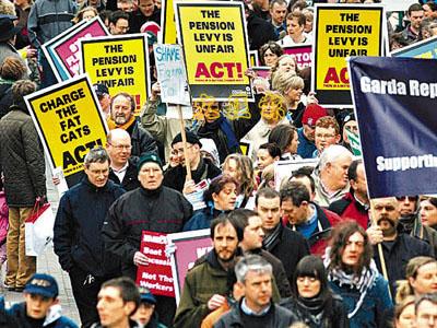中新網(wǎng)2月23日電 受環(huán)球經(jīng)濟(jì)衰退影響,再有歐洲國(guó)家爆發(fā)大規(guī)模示威。據(jù)香港《文匯報(bào)》報(bào)道,12萬(wàn)愛(ài)爾蘭人21日走上首都都柏林街頭,抗議政府拯救經(jīng)濟(jì)不力。參與示威的包括教師、公務(wù)員甚至警察,由于人數(shù)太多,主辦單位要提早出發(fā),人龍一度填滿長(zhǎng)達(dá)兩公里的游行路線。
