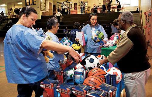 中新網(wǎng)12月25日電 據(jù)香港大公網(wǎng)報(bào)道,美國(guó)一座女子監(jiān)獄為囚犯安排了一場(chǎng)圣誕購(gòu)物,設(shè)置了一個(gè)放滿廉價(jià)貨品的臨時(shí)“商店”,讓她們過(guò)過(guò)購(gòu)物癮,獄中媽媽更可在這活動(dòng)中與子女享享天倫之樂(lè)。