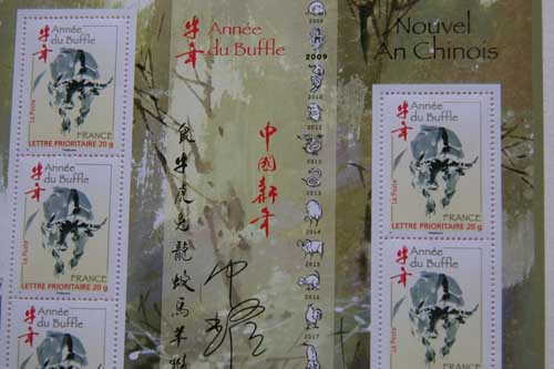 送走令人感慨的鼠年,中國的牛年春節(jié)將至。法國郵政局于1月10日在巴黎郵政沙龍舉行了中國牛年生肖郵票發(fā)行儀式。目的在于與廣大旅法華人華僑共同分享中國傳統(tǒng)的春節(jié)歡樂。