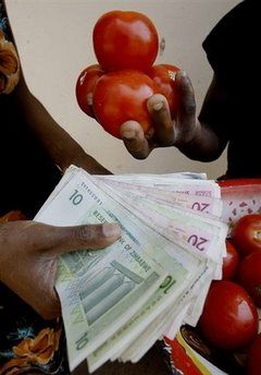 據(jù)印度IANS通訊社2日?qǐng)?bào)道,去年8月,津巴布韋中央銀行宣布去掉鈔票后的10個(gè)零,但由于惡性通貨膨脹又漲了回來。目前,津巴布韋的通貨膨脹率已經(jīng)達(dá)到了百分之10億。周日,一美元可以兌換250萬億津巴布韋元。