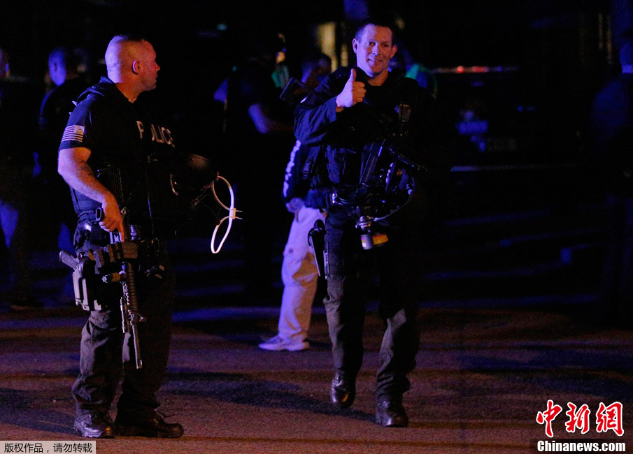 波士頓爆炸案在逃嫌疑人被抓獲 警官豎起大拇指