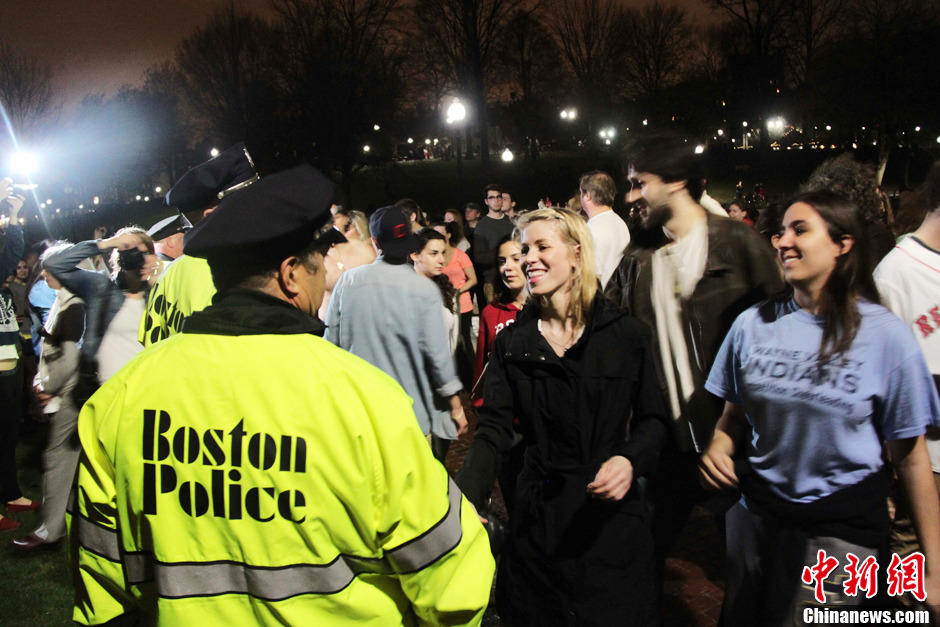 波士頓爆炸案在逃嫌疑人被警方抓獲 民眾祝賀