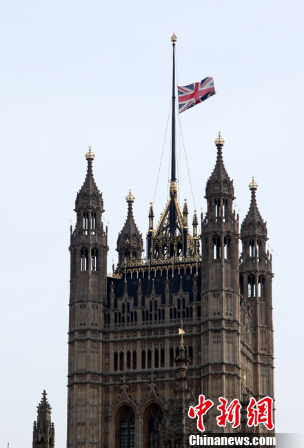英國議會(huì)大廈降半旗對(duì)撒切爾夫人表示哀悼