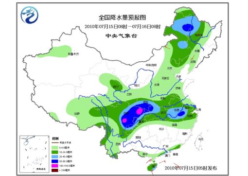 15日08時(shí)至16日08時(shí),新疆天山西部、青海南部和東部、西藏中東部、甘肅中東部、寧夏南部、陜西大部、內(nèi)蒙古中東部、東北地區(qū)中西部、華北、黃淮大部、江淮、江漢、江南北部、華南南部、四川、重慶、云南大部及貴州北部有小到中雨或陣雨,其中,陜西南部、四川中東部、重慶西部和北部、湖北西北部和東部、安徽中南部、江西北部、內(nèi)蒙古東部、黑龍江西部等地的部分地區(qū)有大雨或暴雨,四川盆地局部有大暴雨;上述局部地區(qū)并伴有短時(shí)雷雨大風(fēng)等強(qiáng)對(duì)流天氣。新疆北部、內(nèi)蒙古中東部、東北地區(qū)等地有4~6級(jí)風(fēng)。南海中北部有6~8級(jí)大風(fēng);“康森”中心經(jīng)過(guò)附近海面的風(fēng)力可達(dá)9~11級(jí);南海南部有5~7級(jí)西南風(fēng)。
