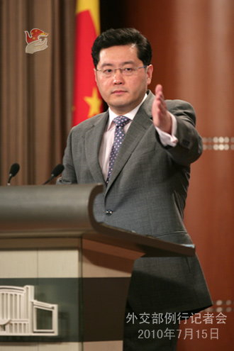 2010年7月15日外交部發(fā)言人秦剛舉行例行記者會。
