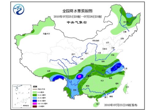 24日20時(shí)至25日20時(shí),新疆西南部、青海東北部、西藏南部、西北地區(qū)東部、內(nèi)蒙古東北部、黑龍江西部、吉林西部、華北西南部、黃淮西部和南部、江淮、江漢、江南、華南、西南地區(qū)等地有小到中雨或陣雨,其中,四川盆地、陜西中部和西南部、安徽中部偏西地區(qū)、湖北東北部、浙江東部沿海、福建東南部、廣東東部、云南大部有大雨或暴雨,四川盆地西部的局部地區(qū)有大暴雨;上述地區(qū)局地并伴有短時(shí)雷雨大風(fēng)等強(qiáng)對(duì)流天氣。新疆北部和西部、甘肅西部、內(nèi)蒙古中西部等地有4~5級(jí)風(fēng),新疆山口地區(qū)風(fēng)力可達(dá)6~7級(jí)。南海南部有5~6級(jí)西南風(fēng)。