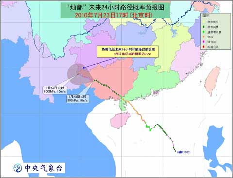今年第3號熱帶風(fēng)暴“燦都”(CHANTHU)于7月23日傍晚在廣西西部減弱為熱帶低壓,23日20時(shí)中央氣象臺對其停止編報(bào)。