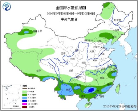 30日08時(shí)至31日08時(shí),新疆西部、青海西南部、西藏、內(nèi)蒙古中東部、東北地區(qū)、河北北部、北京中北部、江淮中西部、江漢、江南、華南以及西南地區(qū)大部有小到中雨或陣雨,其中,黑龍江西北部、吉林東南部、遼寧東北部、河北北部、西藏東南部、云南西北部和東南部、廣西東北部、廣東西北部、福建中部偏東地區(qū)等地有大雨、局地暴雨;上述地區(qū)局地并伴有短時(shí)雷雨大風(fēng)等強(qiáng)對(duì)流天氣。新疆北部、甘肅西部、內(nèi)蒙古大部有4~6級(jí)風(fēng),新疆山口地區(qū)風(fēng)力可達(dá)8級(jí)。東海大部、臺(tái)灣海峽、臺(tái)灣以東洋面有5~6級(jí)西南風(fēng);南海西北部、北部灣有5~6級(jí)偏南風(fēng)。