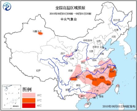 未來三天,黃淮大部、江淮、江漢、江南、華南大部、四川盆地中東部、重慶、貴州東部及甘肅中部、陜西大部、山西中部和西南部等地有35~37℃的高溫天氣,局部最高氣溫可達38℃以上。