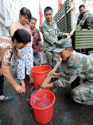 事發(fā)后,通化市委、市政府立即召開緊急會(huì)議,把確保居民基本用水需求作為當(dāng)前救災(zāi)工作的頭等大事,積極采取有效措施,竭盡全力地?fù)屝薰┧芫。市政部門立即組織搶修人員300余人,各種機(jī)械設(shè)備48臺(tái),24小時(shí)不間斷地?fù)屝蕖?/p>
