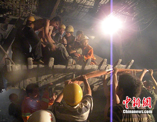 凌晨5時許,消防官兵抵達(dá)現(xiàn)場,發(fā)現(xiàn)隧道施工場地盡頭,幾塊巨大的山石垮塌,將支撐的橫梁壓彎變形,一工人因逃離不及時,左腳被壓在橫梁與山石之間無法動彈,加之隧道通風(fēng)不好,山體還有繼續(xù)垮塌的可能,兩臺重型挖掘機(jī)因支撐山體產(chǎn)生的廢氣十分嗆人,對開展?fàn)I救十分不利。