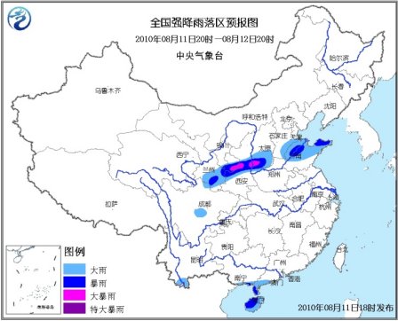 中新網(wǎng)8月11日電 據(jù)中央氣象臺消息,中央氣象臺8月11日18時繼續(xù)發(fā)布暴雨藍色預警:8月11日20時到8月12日20時,甘肅南部和東部、陜西中部、山西中南部、河北南部、山東中北部、四川盆地西部、廣西南部、廣東西南部、海南、云南南部等地的部分地區(qū)有大雨或暴雨,其中,甘肅東部、陜西中部、山西西南部等地的局部地區(qū)有大暴雨;上述地區(qū)局地并伴有短時雷雨大風等強對流天氣。