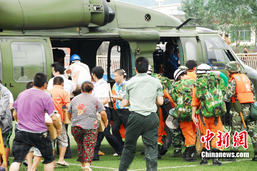 中午12時(shí)05分,空軍陸航團(tuán)派出兩架直升飛機(jī)前來(lái)支援,深入災(zāi)區(qū)探測(cè)道路情況和人員被困情況。從下午1點(diǎn)14時(shí)45分至下午4點(diǎn),消防支隊(duì)共派出30人,由參謀長(zhǎng)徐昌榮帶隊(duì)分六批次搭乘空軍陸航團(tuán)飛機(jī)帶上破拆工具、生命探測(cè)儀、照明工具、水上救援工具、安全救生繩索等已安全到達(dá)清平災(zāi)區(qū)。30名消防官兵到達(dá)災(zāi)區(qū)后,立即設(shè)立了消防部隊(duì)搶險(xiǎn)救援指揮部,指揮一線官兵積極投入救援工作,爭(zhēng)分奪秒營(yíng)救被困群眾。