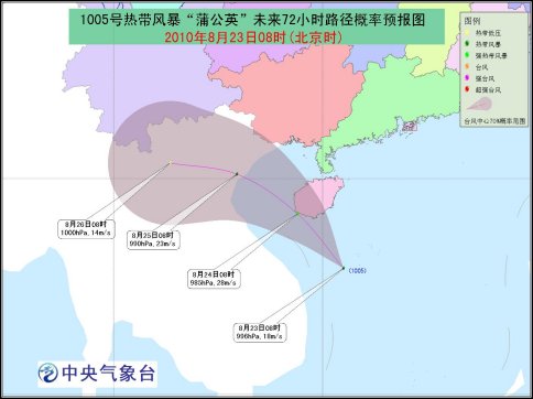 10時(shí),“蒲公英”中心位于海南省三亞市南偏東方大約290公里的南海中部海面上,就是北緯15.9度、東經(jīng)110.8度,中心附近最大風(fēng)力有8級(jí)(20米/秒),中心最低氣壓為988百帕。