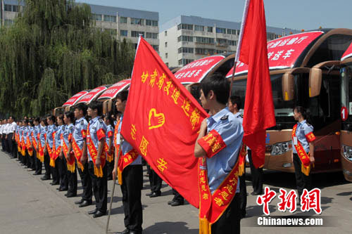 30日上午,第三批轉(zhuǎn)運(yùn)的26輛旅游大巴從舟曲運(yùn)載1056名學(xué)生和老師60名,行至蘭州后仍安置在蘭州科技外語(yǔ)學(xué)校、甘肅省銀行學(xué)校和財(cái)政學(xué)校。