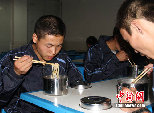 端著學(xué)校統(tǒng)一配發(fā)的新飯盒,孩子們?cè)凇毙录摇暗谝活D餐開灶了!霸缇吐犝f蘭州的牛肉面非常有名”,高一(2)班的高興平毫不猶豫的走進(jìn)了一樓食堂。“味道真棒!”高興平豎著大拇指說,沒想到來這里吃得第一頓飯就是牛肉面。